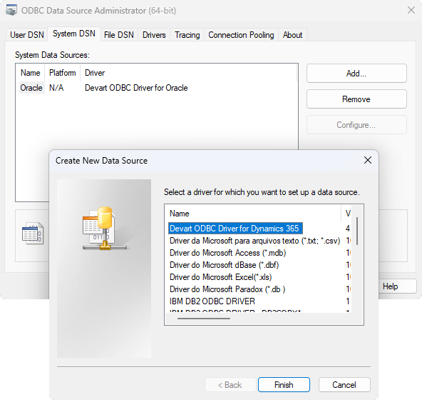 • Click Add and pick “Devart ODBC Driver for Dynamics 365” from the list.
