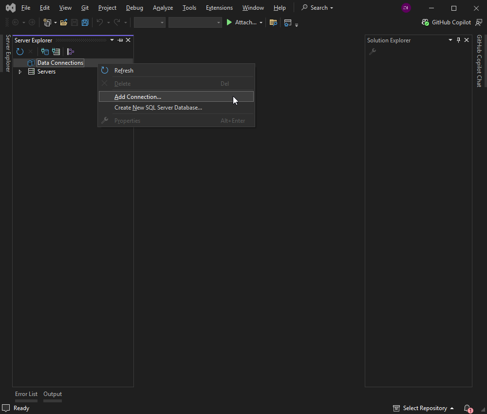 • Right-click Data Connections in Server Explorer and select Add Connection.