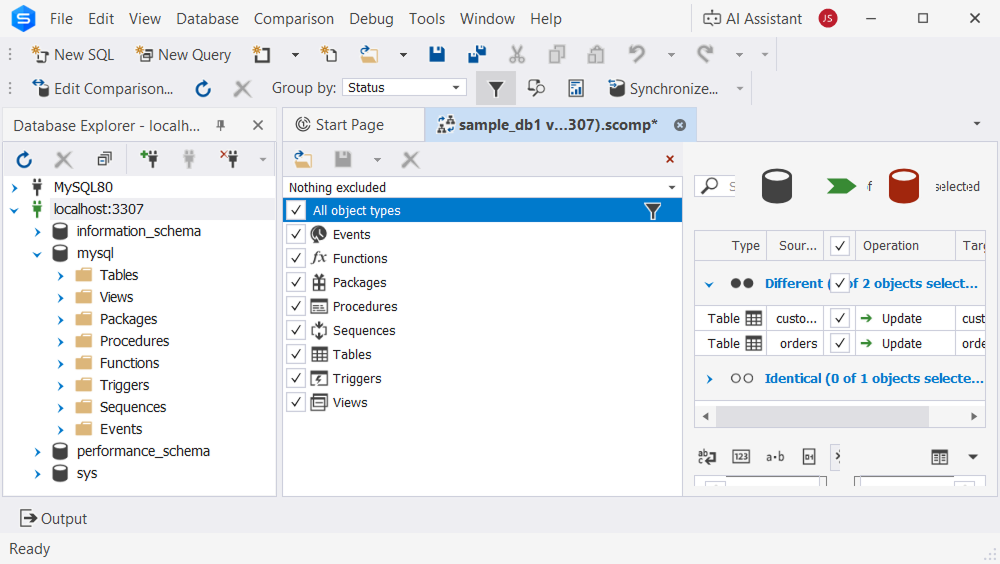 With dbForge Studio for MySQL, you can easily compare and synchronize database structures and data between MariaDB 12 and previous versions. This feature is invaluable when testing upgrades, validating migrations, or maintaining consistency across development and production environments.