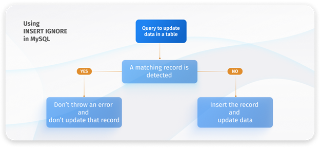 As previously mentioned, while MySQL doesn’t have a dedicated UPSERT command, you can still achieve this functionality through various methods, ensuring smooth and error-free database updates. MySQL provides three approaches: INSERT IGNORE, REPLACE, and INSERT … ON DUPLICATE KEY UPDATE.
