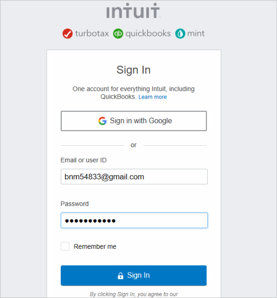 - Sign in to QuickBooks Online using your browser or Google login.