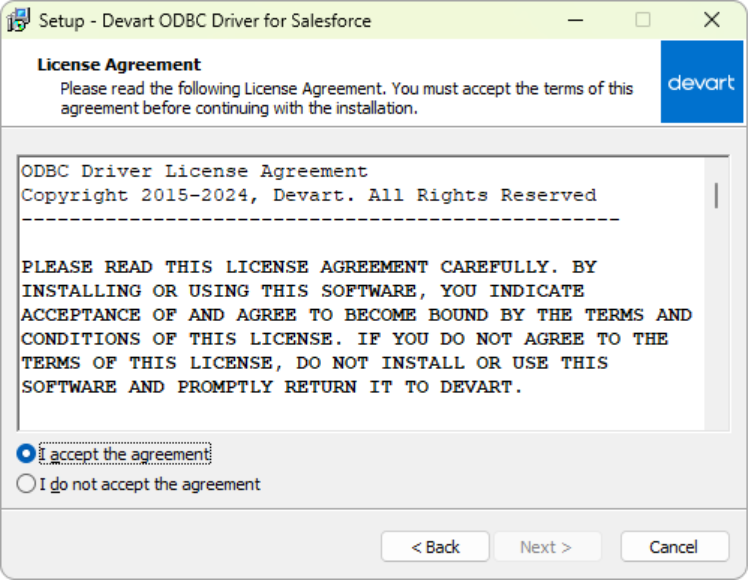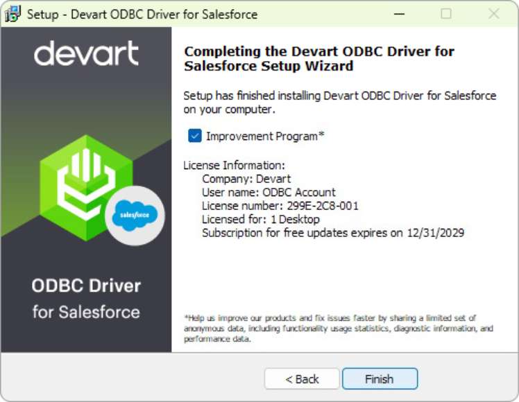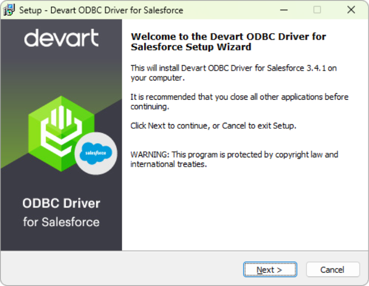 - Download the installer: Visit the Devart website and download the appropriate ODBC Driver for Salesforce version for Windows.