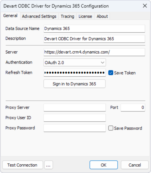 Note: When using login/password authentication, you will be prompted for the password at runtime unless it is saved in the DSN. For OAuth 2.0 connections, leave the User ID and Password fields blank; the driver manages authentication automatically.